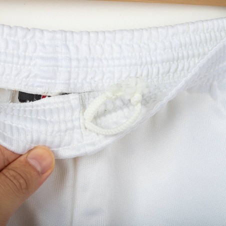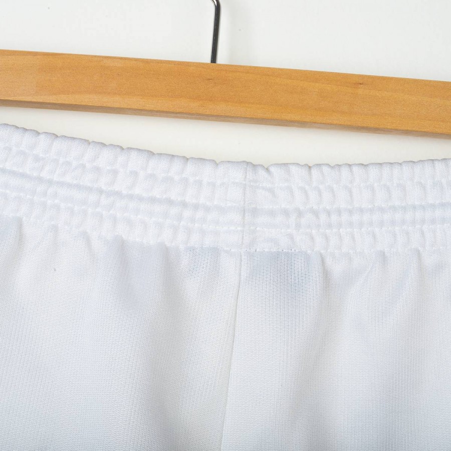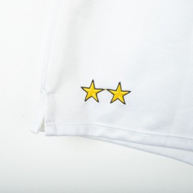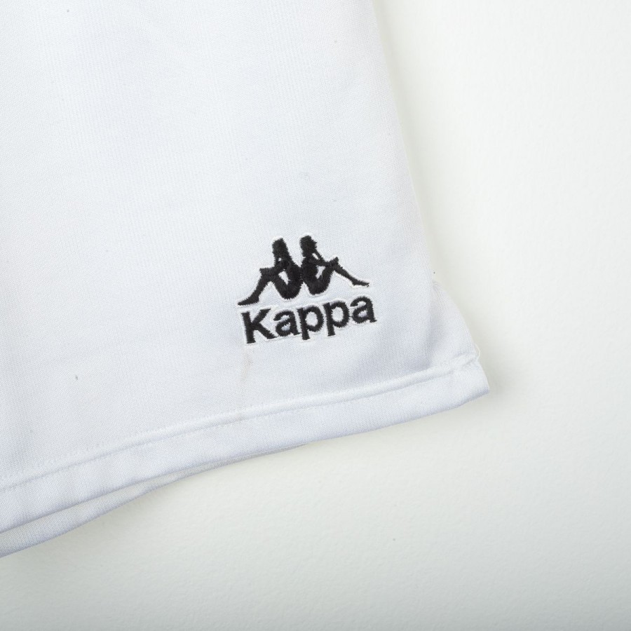 Kappa home shorts of Juventus from the 1994/1995 season. White technical fabric with the iconic minimal 90s design. Embroidered Kappa logo in black on the right leg and two embroidered Scudetto stars in yellow on the left leg. Elastic waistband with internal drawstring. Classic fit. Large Size.