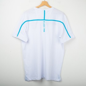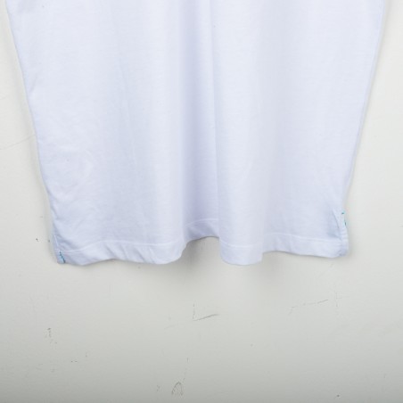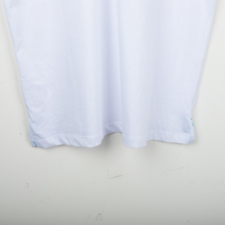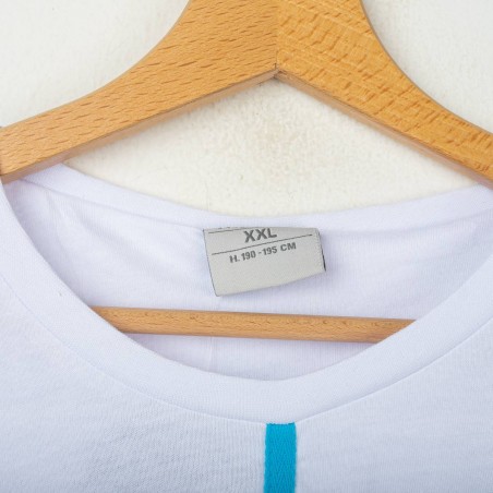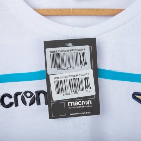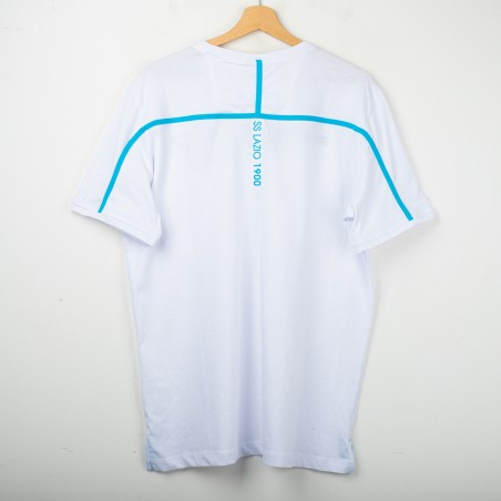 Lazio training T-shirt made by Macron for the 2018/2019 season. White design with light blue details, featuring the Macron logo embroidered on the right chest and the club crest stitched on the left chest. On the back, the “SS LAZIO 1900” lettering in light blue. Regular fit, lightweight and breathable fabric, perfect for training and casual wear. Size XXL.