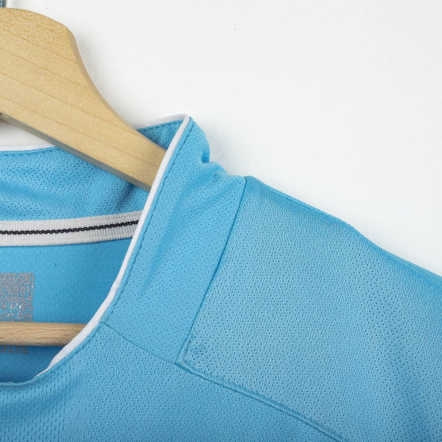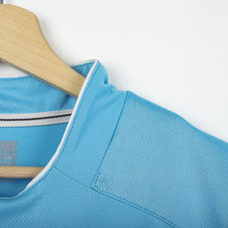 Lazio home shirt from the 2002/2003 season, made by Puma. Classic sky blue with white trim on collar and sleeves. Embroidered Puma logo at the center chest and stitched Lazio crest on the left chest. Siemens Mobile sponsor printed in black and red on the front. Mihajlovic name and number 11 printed in flock white on the back. Authentic Team Apparel patch at the hem. Regular fit, size L.