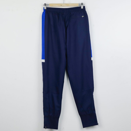 Official Deportivo La Coruña tracksuit from the 2020/2021 season, produced by technical sponsor Macron. This blue tracksuit with white and electric blue details on the shoulders and pants features the Macron logo embroidered on the right side of the jacket and the Deportivo La Coruña crest on the left chest. The matching pants have the club's crest on the right thigh. The jacket is equipped with a central zipper, and the pants have ankle zippers, offering practicality and comfort. This model is size M.