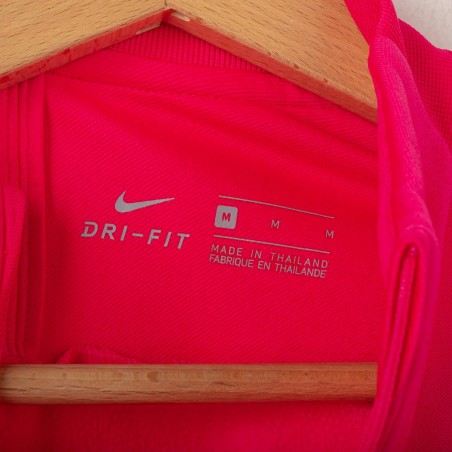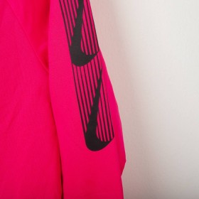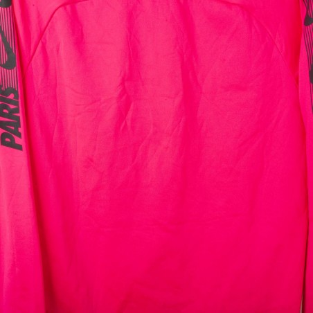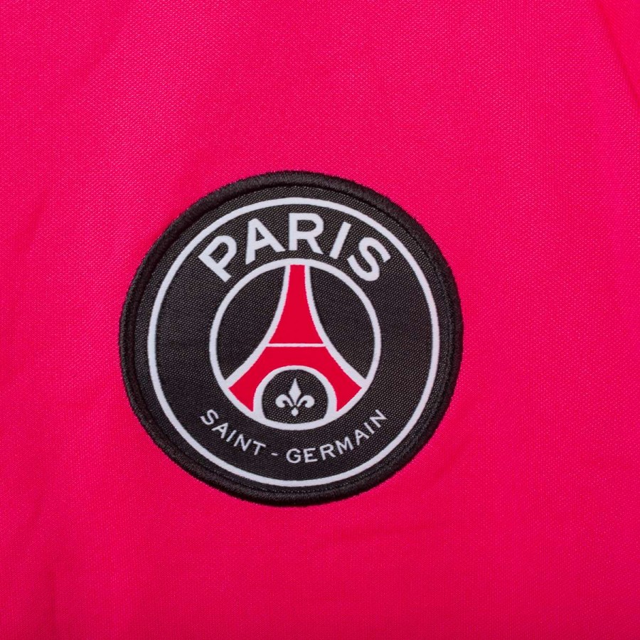 Paris Saint-Germain training sweatshirt from the 2018/2019 season made by Nike. This vibrant pink piece features black detailing, club crest on the chest and Nike branding on the front and sleeves, including the word “PARIS” alongside the swoosh. Size M.