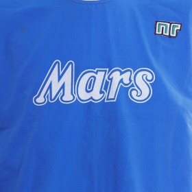 Napoli Mars training bib from 1988/1989, made by NR (Ennerre). Classic light blue model with Mars sponsor on front and back, NR logo stitched on chest. Made in Italy, worn during the Diego Maradona era. An iconic vintage piece, perfect for collectors and football enthusiasts.
