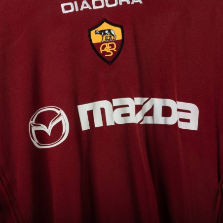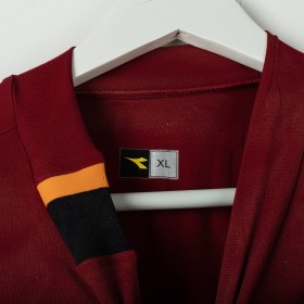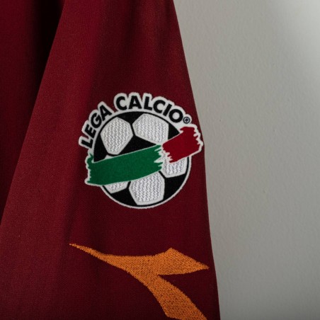 AS Roma 2003/2004 Home jersey worn on the pitch by Francesco Totti, number 10. Made by Diadora, it features the classic red design with yellow and black inserts. The front shows the embroidered Diadora logo and the Mazda sponsor, while the official Lega Calcio patch is present on the sleeve. On the back, “Totti” and number 10 are printed in white. This shirt has match characteristics, with details and materials different from store versions. A rare collectible tied to Roma’s eternal captain.