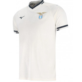 Official SS Lazio Away Shirt 2025/2026 by Mizuno. White design with white collar and sleeve details, featuring the iconic eagle crest and Mizuno logo. Made from lightweight, breathable technical fabric for maximum comfort and performance. A stylish jersey celebrating Lazio’s proud tradition.
