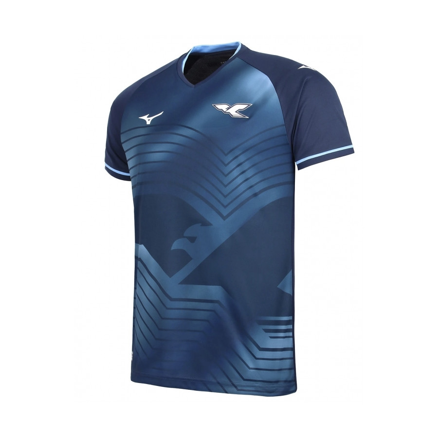 Official SS Lazio Third Shirt 2025/2026 by Mizuno. Navy blue design featuring a stylized eagle graphic — symbol of Lazio’s strength and tradition. Modern V-neck cut with light blue details. Made from lightweight, breathable technical fabric for top performance and true Biancocelesti style.