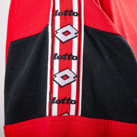 Milan sweatshirt by Lotto, football season 1995/1996, full zip model. Present side pockets with zip and elastic at the waist and cuffs. On the front we find the AC Milan patch stitched on the heart side and the logo of technical sponsor Lotto embroidered on the right.