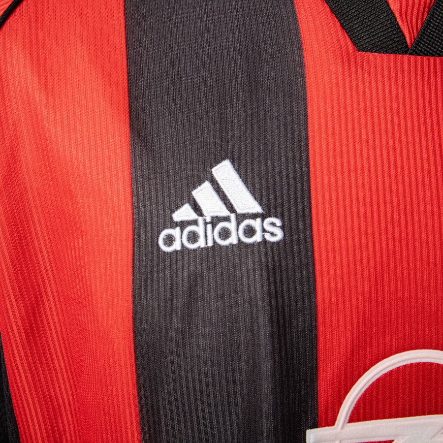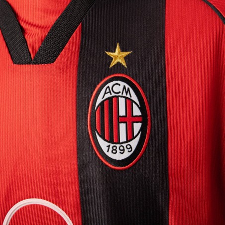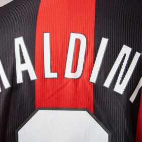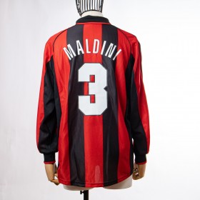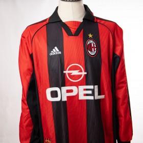 Long-sleeved model in the classic Rossoneri colours. The shirt is produced by the technical sponsor Adidas, which we find in embroidery on the right. The commercial sponsor is Opel, applied in white velvet in the centre. On the back are printed lettering MALDINI and the number 3.