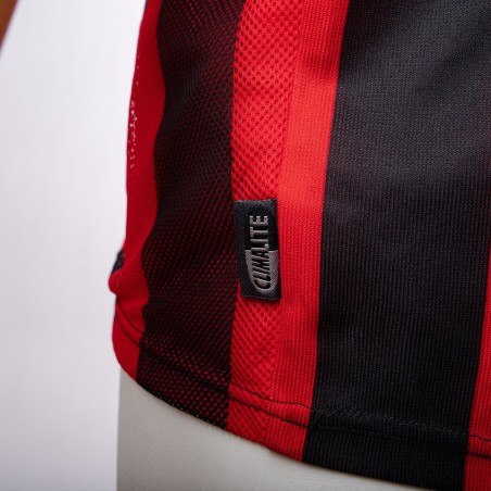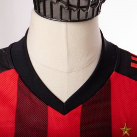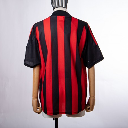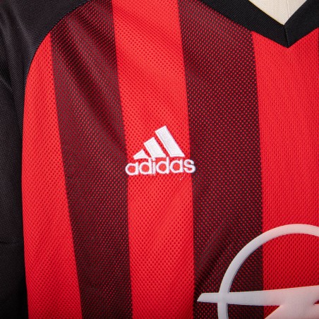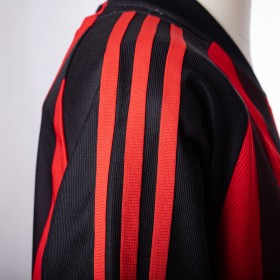 The Milan jersey was produced by technical sponsor Adidas for the 2002/2003 season. The sponsor's logo is embroidered on the right side of the front, while the team patch is applied on the heart side. The particularity of the jersey is represented by a mesh lining applied only on the front. Commercial sponsor Opel.
