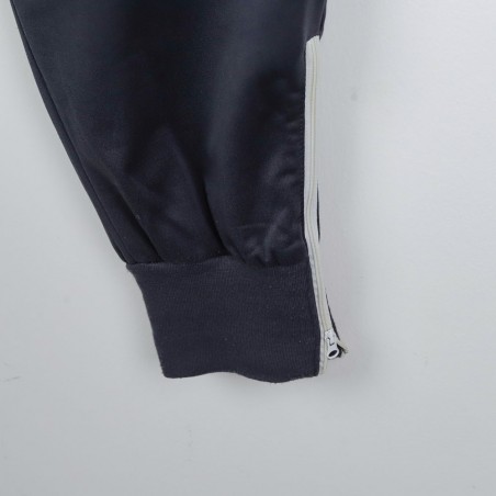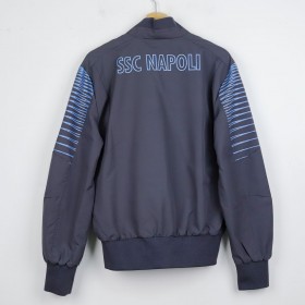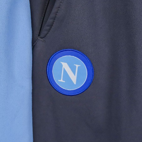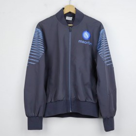 Official SSC Napoli tracksuit made by Macron for the 2014/2015 season. Includes full zip jacket and matching pants. Jacket in anthracite grey with light blue inserts on the shoulders and embroidered “SSC NAPOLI” lettering on the back. SSC Napoli crest stitched on the left chest and Macron logo embroidered on the right. Pants in dark grey with light blue side inserts and white Macron logo. Adjustable ankle hems with zip. Regular fit. Size M. Original Macron piece, ideal for fans and collectors.