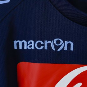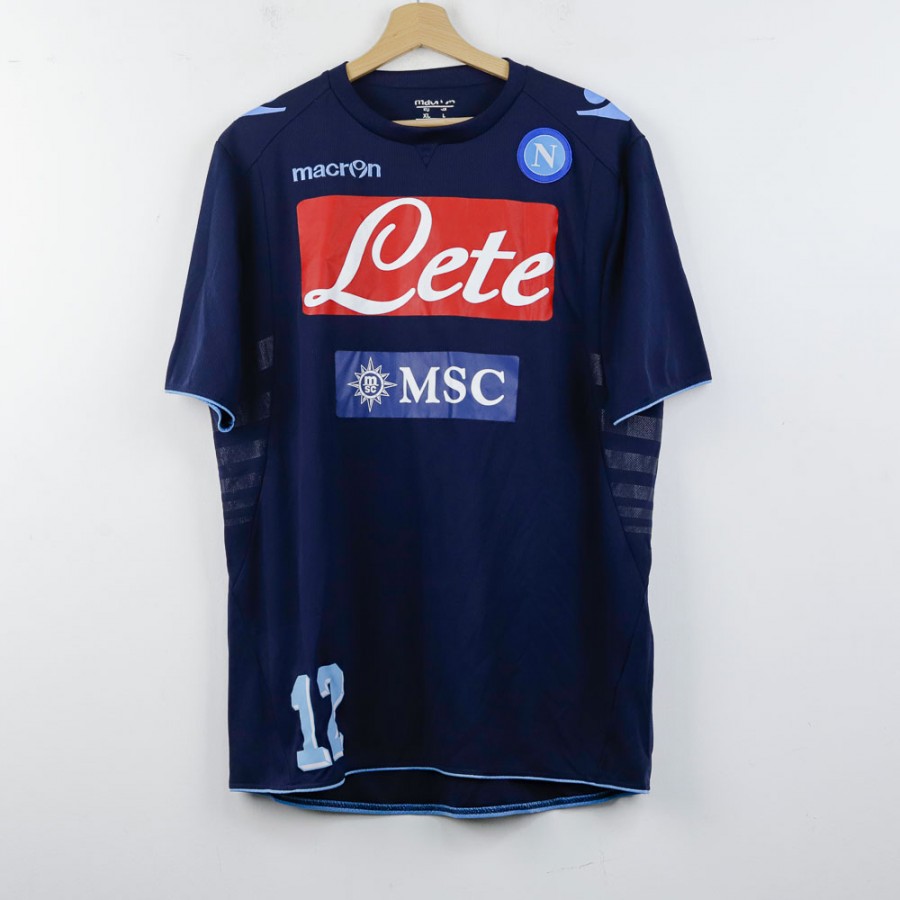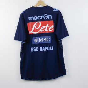 SSC Napoli Macron training t-shirt from the 2013/2014 season, official club version. Navy blue with light blue details, sponsors Lete and MSC printed on front and back. Features Napoli crest on chest and number 12.