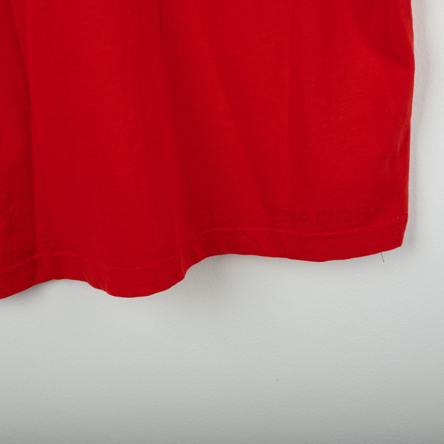Official SSC Napoli T-shirt made by Diadora for the 2006/2007 season. Crafted from 100% red cotton, it features a vintage-style print with the club’s mascot and the text “Napoli S.S.C. – Founded 1926 – Super Supporter”. Classic short-sleeve fit, soft touch fabric, and casual retro look — a perfect piece for true Napoli fans.