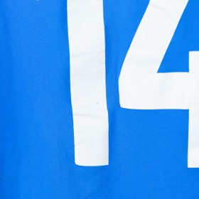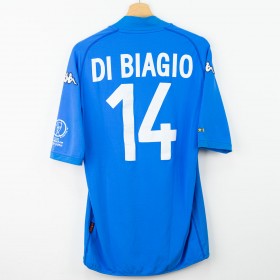Kombat version shirt produced by Kappa for the Korean World Cup. The jersey fabric is made of 92% polyamide and 8% Lycra. On the front of the shirt there is the Federation crest and on the sleeves there is the Kappa logo and the three stars. Also present is the logo of the World Cup 2002 Korea Japan competition. Personalized shirt with Di Biagio's name and number 14.