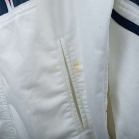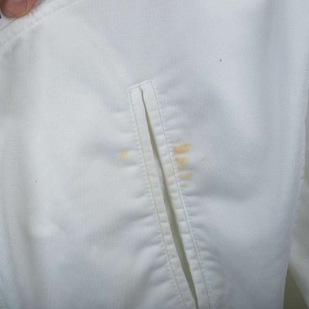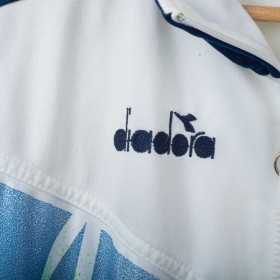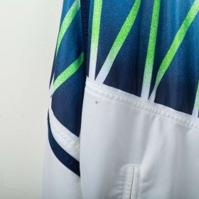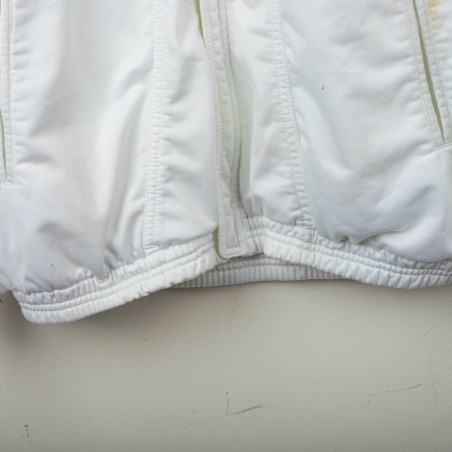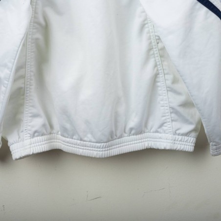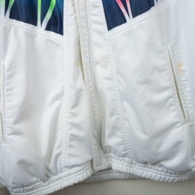 Official Italy national team jacket made by Diadora for the 1994 USA World Cup. White base with bold geometric graphics in red, green, and blue. Embroidered Diadora logo on the right chest and stitched FIGC crest with three stars on the left. Full front zip with side pockets. Oversized 90s fit, size XL (tagged). A true vintage piece worn by the Azzurri staff during the 1994 World Cup in the United States.