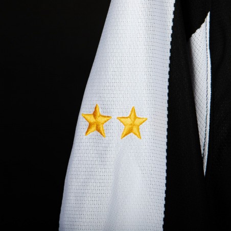 The uniform has short sleeves in black and white. On the front we have the heart side emblem, the Nike sponsor and further down the New Holland Fiat Group Commercial one. Lega Calcio Serie A patch and two golden stars embroidered on the sleeves.
