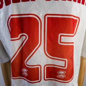 Vintage match shirt, year 96/97, perfect condition, name and number Delli Carri 25, soft fabric, weft and patches in order, technical sponsor Abm, commercial sponsor Caripiacenza.