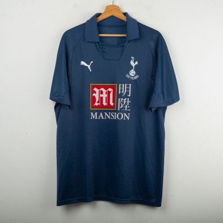 Official Tottenham Hotspur away shirt made by Puma for the 2007/2008 season, featuring Robbie Keane’s number 10 print. Special edition celebrating the club’s 125th anniversary, with embroidered Spurs crest and “125 Years” detail. Navy blue design with polo collar and tonal inserts. Embroidered Puma logo on the right chest and printed Mansion sponsor at the center. Lightweight, breathable technical fabric for comfort on and off the pitch. A historic jersey honoring one of England’s most iconic clubs.