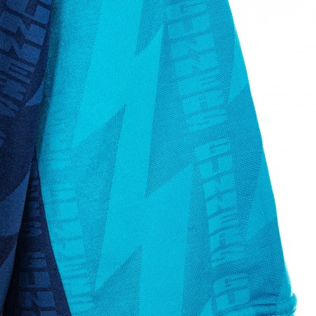 The product is well shown by the multiple photos. The shirt has short sleeves, has a blue stand-up collar and its main color is blue, even if the collar and part of the sleeves are made in light blue; lightning bolts and the word GUNNERS are repeated within the plot, both vertically; the club logo is applied to the top left, while the white logo of Nike, technical sponsor, appears on the opposite side; under these elements, the white wording JVC, commercial sponsor of the London team, stands out.