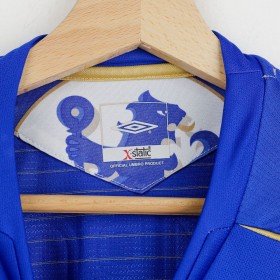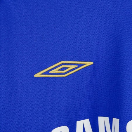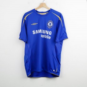 Official Chelsea home shirt made by Umbro for the 2005/2006 season. Features Samsung Mobile sponsor and 100 years anniversary badge. Name and number Lampard 8 on the back. Blue with gold details. Size large.
