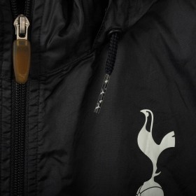 Official Tottenham jacket from the 2011/2012 season, made by technical sponsor Puma. Black color with gold details, full front zip and adjustable hood. Club crest on the chest next to the Puma logo. Size M.