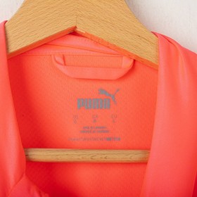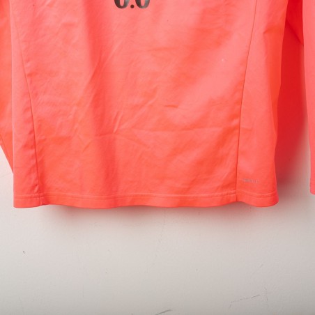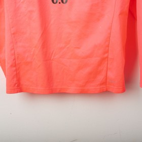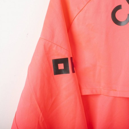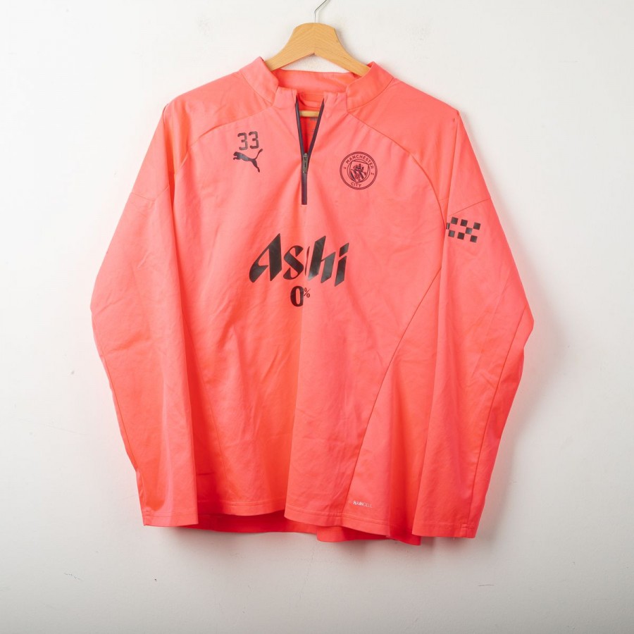 2023/2024 Manchester City training jacket by Puma, in bright orange with black accents. The technical sponsor Puma and commercial sponsor Asahi 0.0% appear on the front. The back features the "CITYZENS" text. Half-zip design and number 33 on the chest reference a squad member. Size L.