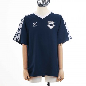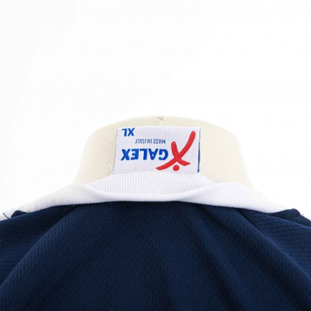 The training shirt is made by GALEX in blue with details on the neckline in white. The company and technical sponsor logos are in perfect condition. The label on the neck shows size XL.