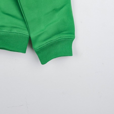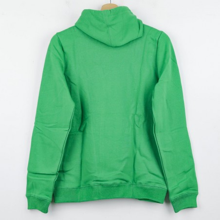Felpa Cappuccio Macron Sporting Lisbona realizzata in verde acceso con dettagli grigi a contrasto. Il logo dello Sporting CP è presente sul petto accanto al logo tecnico Macron. La taglia riportata è S. Questa felpa con cappuccio e tasca centrale frontale combina uno stile sportivo e casual perfetto per i tifosi del club portoghese.