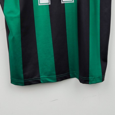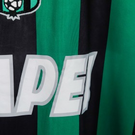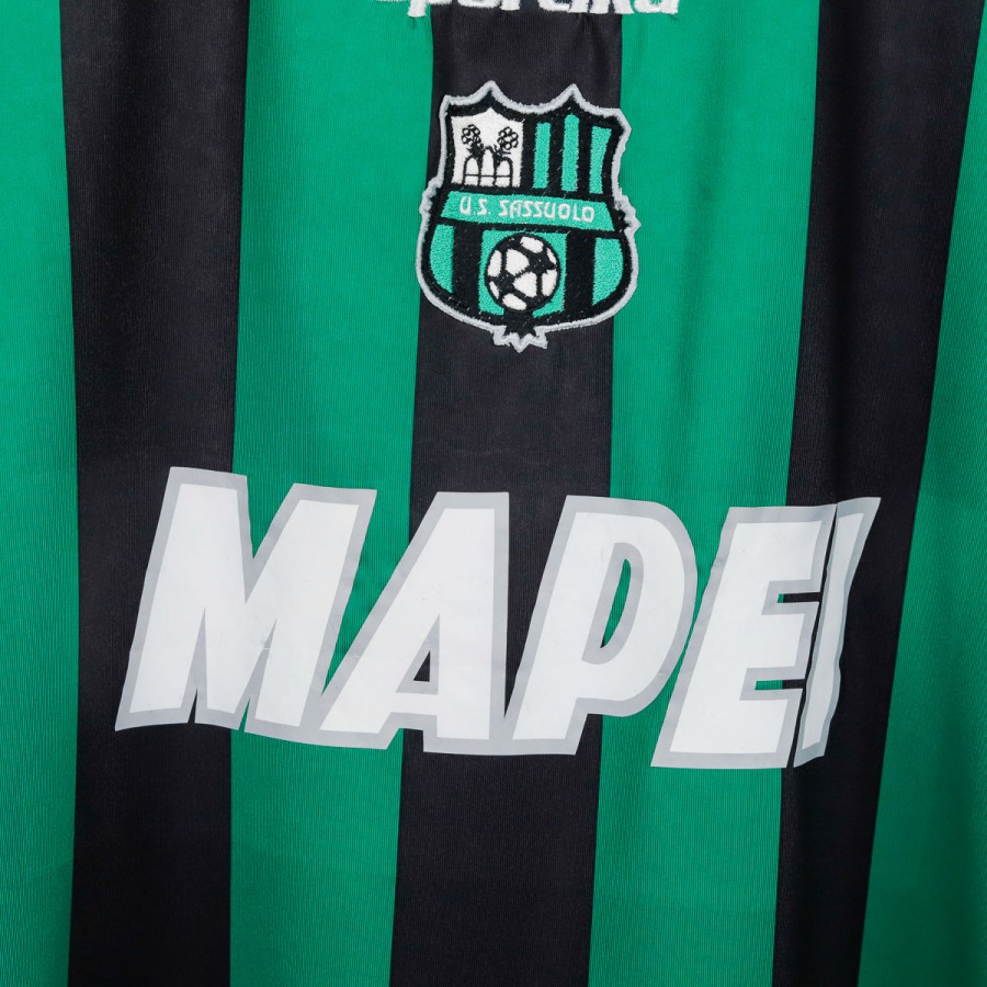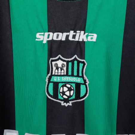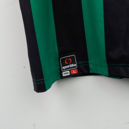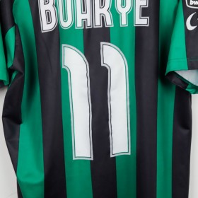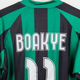 Maglia ufficiale home del Sassuolo Calcio per la stagione 2012/2013, prodotta da Sportika. La maglia è caratterizzata dalle tradizionali strisce verdi e nere, con il logo di Sportika sulla parte alta a sinistra e il logo dello sponsor Mapei al centro. Il nome "Boakye" e il numero "11" sono stampati sul retro, rendendo la maglia un ricordo della stagione in cui l'attaccante ghanese, con la sua abilità, si fece notare in Serie A.