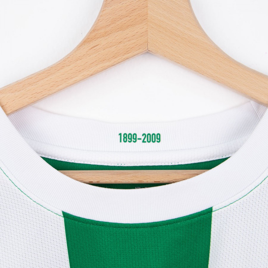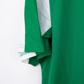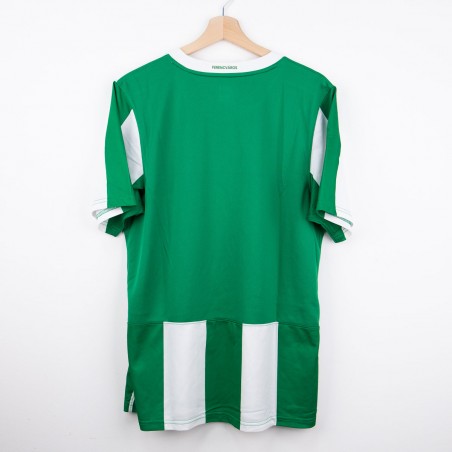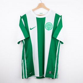 Maglia Home Ferencvaros Nike 2009/2010, realizzata dal brand americano con il logo del club ungherese posizionato sul cuore. Il design a strisce verticali verdi e bianche richiama la tradizione del club, mentre lo swoosh Nike è presente sul lato destro del petto. Taglia M visibile in foto.