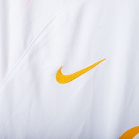 Maglia Away Kaizer Chiefs Nike 2022/2023, taglia L. Realizzata da Nike, presenta il logo dello sponsor tecnico sul petto accanto allo stemma del club sudafricano. Al centro campeggia il logo commerciale Vodacom. Il design bianco con inserti gialli riflette la tradizione cromatica dei Kaizer Chiefs.