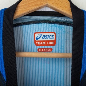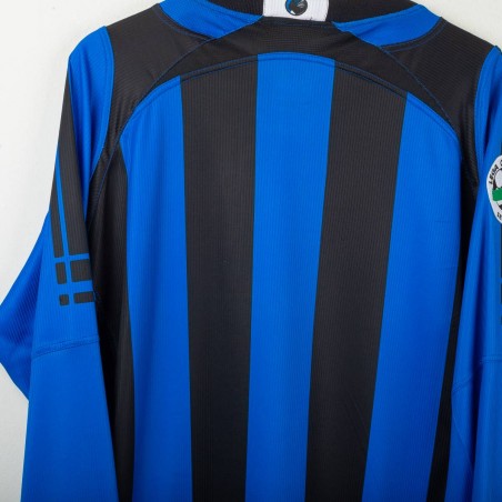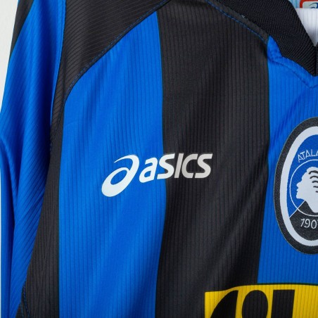 Maglia home dell'Atalanta prodotta da Asics per la stagione 2006/2007, modello a manica lunga. Design a strisce verticali nerazzurre con colletto a V. Sponsor tecnico Asics ricamato sul petto e sponsor commerciali “Sit-in Sport” e “Daihatsu” stampati sul fronte. Stemma Atalanta applicato lato cuore e patch Lega Calcio Serie A TIM cucita sulla manica destra. Vestibilità regolare. Taglia XL.