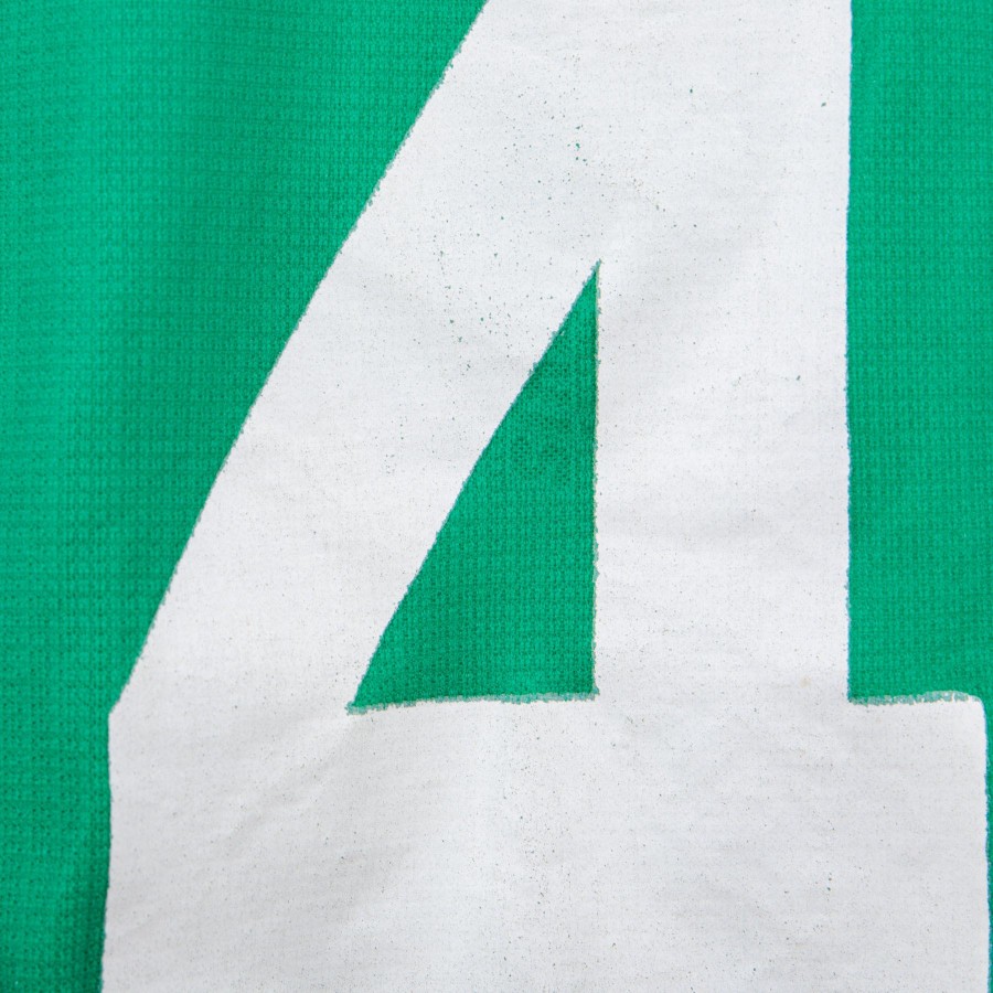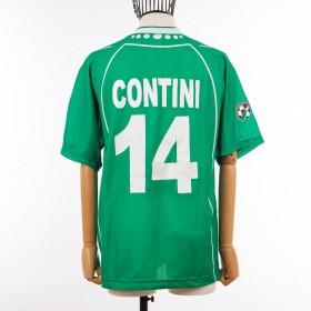 Sulla parte posteriore dell'articolo troviamo, verniciati, in bianco e in dimensioni notevoli, il cognome del difensore, CONTINI, e il 14, suo numero di maglia.