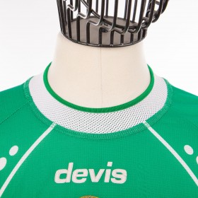 Le foto mostrano chiaramente le condizioni del prodotto. La maglia è a maniche corte, con un normale colletto bianco, ma il colore che la contraddistingue è soprattutto il verde. Per quanto riguarda la parte superiore dell'articolo: in alto, la dicitura, in bianco, dello sponsor tecnico, "devis", è applicata in gommina; dal colletto partono due sottili strisce verniciate bianche verticali che attraversano tutta la maglia, insieme a delle bolle bianche, anch'esse verniciate e bianche; sotto lo sponsor tecnico si trova cucito il logo della compagine irpina; ancora più in basso, la parola, ancora applicata in gommina e sempre di colore bianco, NewNet, ovvero lo sponsor commerciale, alla cui base sta, a destra, un'ulteriore dicitura in bianco, "Gruppo Tufano"; infine, cucito sul retro della manica destra c'è il logo della LEGA CALCIO.