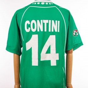 Maglia Gara Avellino Devis Contini 14 2003/2004. Matteo Contini, attualmente allenatore del Carpi, è un ex calciatore professionista, difensore centrale, che ha esordito anche nel campionato di Serie A il 26 settembre 2004, tra le fila del Parma. Nel 2003/2004 Contini ha difeso i colori dell'Avellino in Serie B, partecipando, suo malgrado, alla dolorosa retrocessione degli irpini in Serie C1, a causa del ventitreesimo posto in classifica.