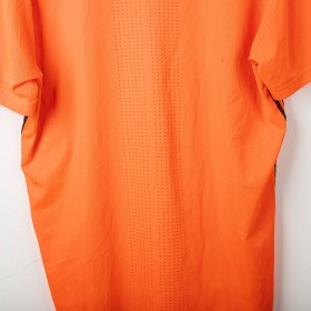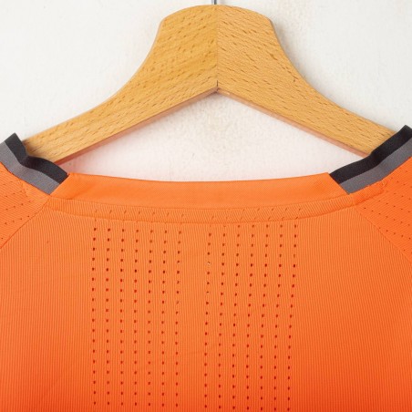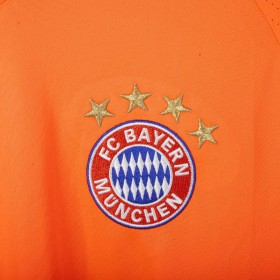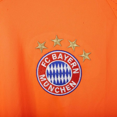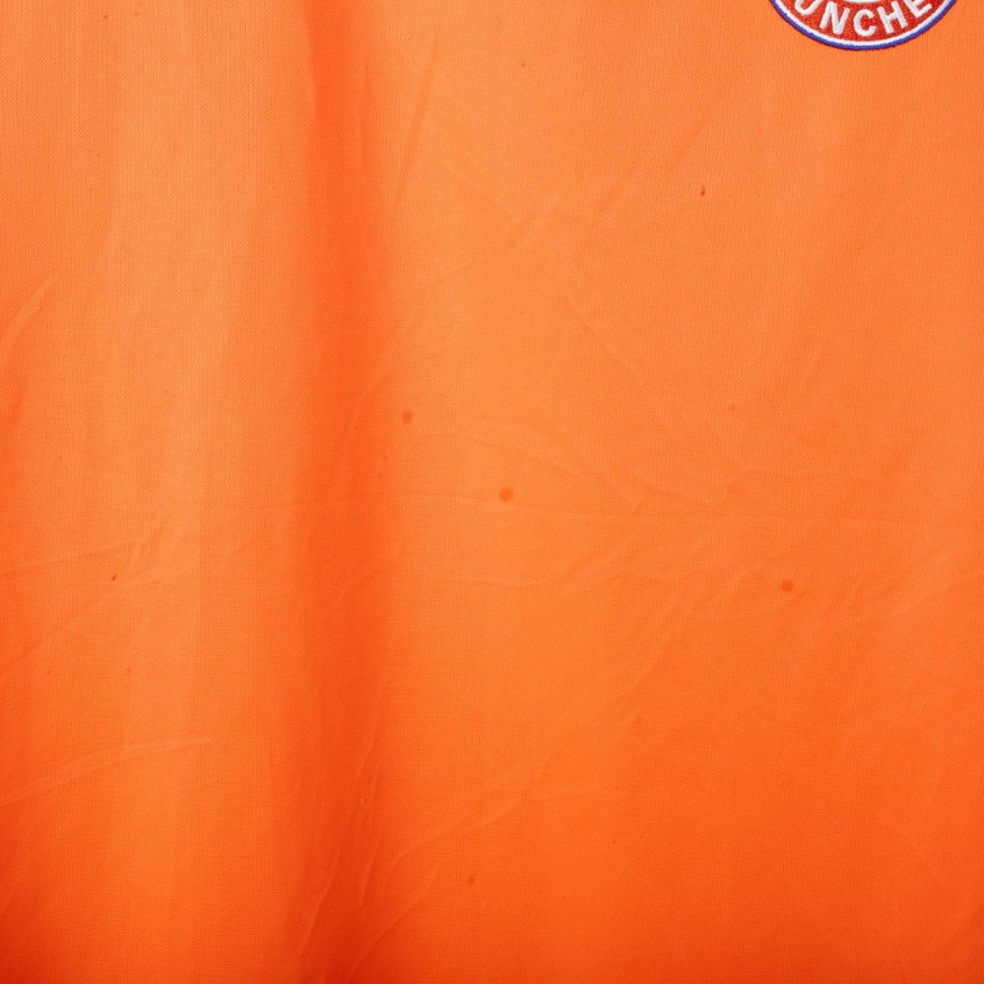 Maglia allenamento Bayern Monaco Adidas 2016/2017 di colore arancione con dettagli neri. Sul petto è presente il logo del club con le quattro stelle e il logo Adidas, sponsor tecnico. La maglia è realizzata con tecnologia Climacool per garantire traspirazione e comfort. La taglia è L e all'interno del colletto è presente il numero 17 scritto a mano, probabilmente a uso interno di squadra.