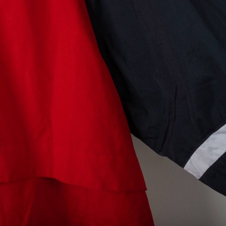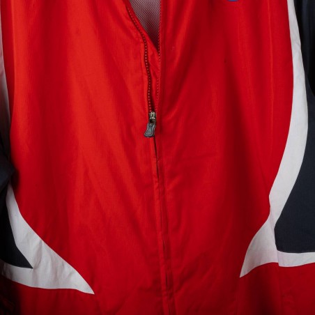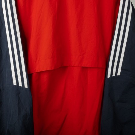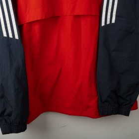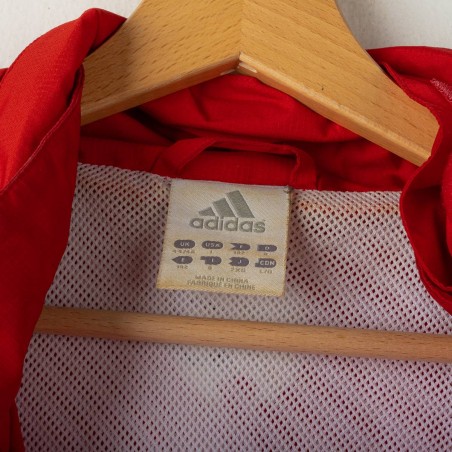 Giacca ufficiale del Bayern Monaco per la stagione 2007/2008, realizzata da Adidas. Questo modello è caratterizzato da una vivace colorazione rossa con maniche blu navy arricchite da dettagli bianchi. Sul petto sono presenti il logo Adidas e lo stemma del club con quattro stelle. Il Modello include cappuccio regolabile, zip frontale e tasche laterali. Taglia L.