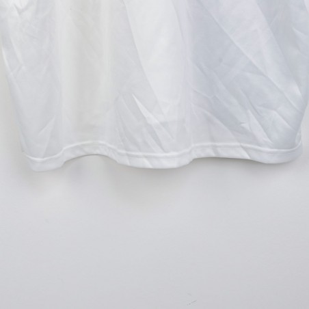 Modello polo di colore bianco con dettagli rossoblu, con lo stemma del club posizionato sul lato cuore.