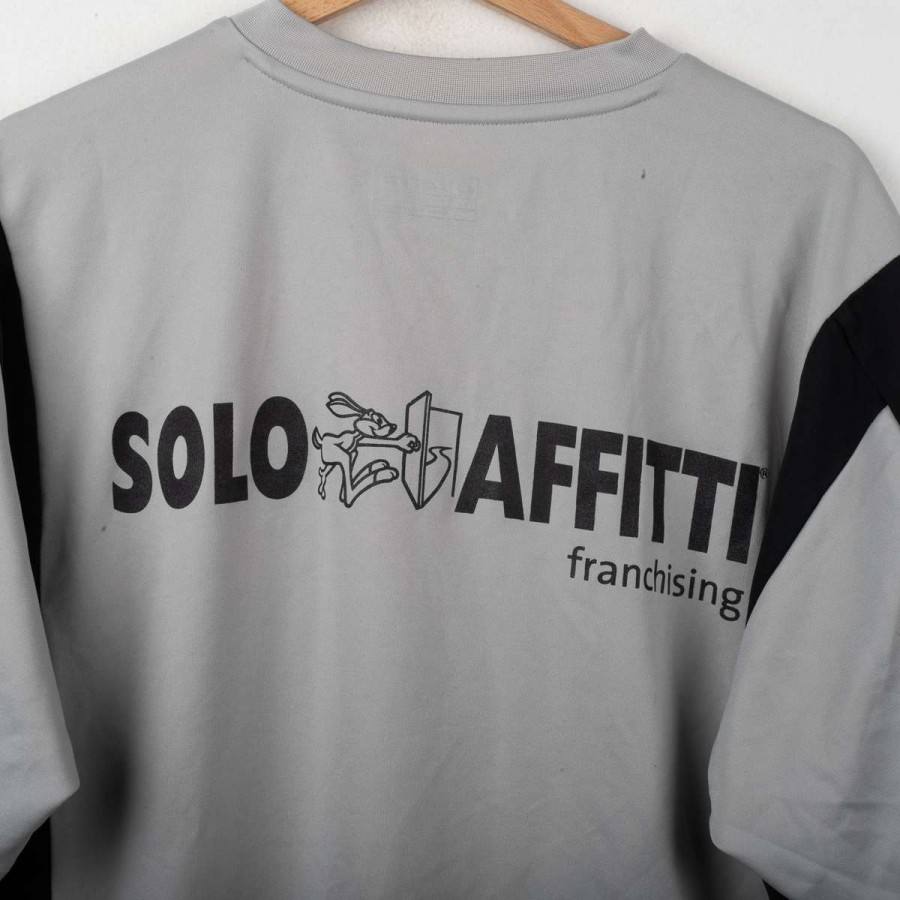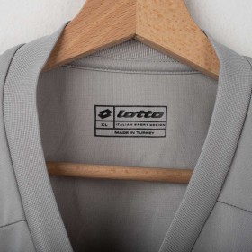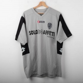 Maglia da allenamento dell'A.C. Cesena utilizzata nella stagione 2005/2006, prodotta da Lotto. Colore grigio con inserti neri sui fianchi e sulle maniche. Logo Lotto ricamato sul petto destro e applicato in bianco sulle maniche, stemma A.C. Cesena cucito lato cuore. Sponsor commerciale “Solo Affitti” stampato in nero sul fronte e sul retro. Colletto a V in maglia, vestibilità regolare. Taglia XL.