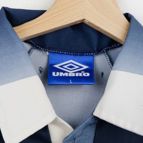 Maglia Away Ajax Umbro Laudrup 11 1997/1998. Questa iconica maglia da trasferta dell'Ajax è realizzata da Umbro e presenta il numero 11 e il nome di Brian Laudrup, uno dei talenti più raffinati passati per il club olandese. Lo stemma dell'Ajax e il logo dello sponsor tecnico Umbro sono accompagnati dal celebre sponsor commerciale ABN-AMRO, disposto in verticale sul petto. La taglia indicata è L.