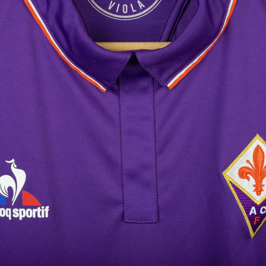 Maglia home della Fiorentina utilizzata nella stagione 2016/2017, prodotta da Le Coq Sportif. Versione a manica corta di colore viola, con colletto a polo e bordi manica rifiniti con dettagli rosso e bianco. Sul petto sono presenti il logo Le Coq Sportif stampato in bianco e lo stemma ACF Fiorentina cucito lato cuore. All'interno del colletto è stampata la scritta “Con il cuore viola”. Tessuto tecnico in poliestere traspirante, morbido e leggero. Taglia L.