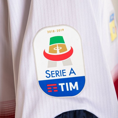 Maglia da gara Away del Genoa stagione 2018/2019 dell'attaccante Krzyzstof Piatek. Sul fronte è applicato al centro il logo Genoa e sul lato cuore è applicato il logo Lotto. Sul retro sono stampati lettering Piatek e numero 9. Sul retrocollo è applicata la lettering 1893 e sulla manica destra c'è la patch Serie A Tim. Tutti i loghi degli sponsor commerciali sono stampati in plastica leggera.