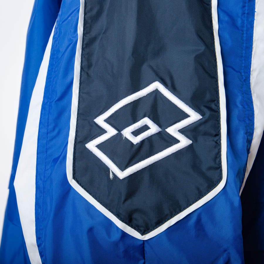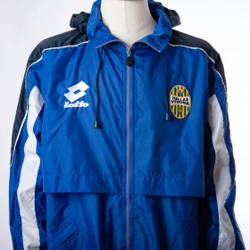Modello impermeabile full zip prodotto da Lotto. Cappuccio regolabile a scomparsa nel collo. Tasche con zip laterali e laccetto regolabile anche in vita. La patch del club è cucita lato cuore, mentre i loghi dello sponsor tecnico Lotto sono in ricamo.