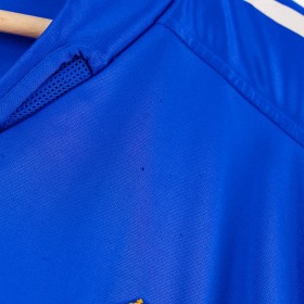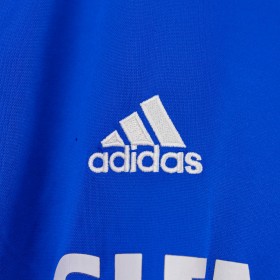 Modello a maniche corte di colore blu con colletto a V. Lato cuore troviamo lo stemma della squadra, dall'altra parte il logo Adidas ricamato in bianco.