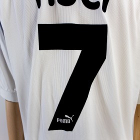 Maglia gara vintage in condizioni ottimali, anno 97/98, nome e numero Tisci 7, trama ottima e colori vividi, macchie in zona colletto anteriore, manica sinistra e sulla cucitura all'estremo del capo. sponsor tecnico Puma, sponsor commerciale gelati Gis.