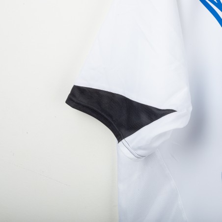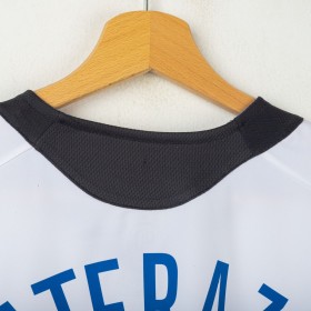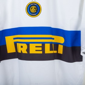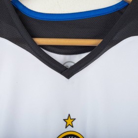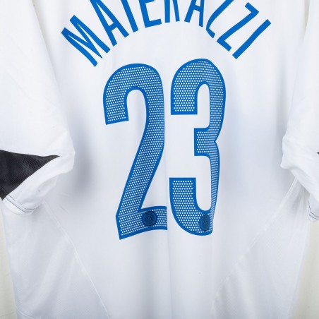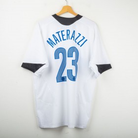 Maglia away dell'Inter prodotta da Nike per la stagione 2005/2006, personalizzata con il nome e il numero 23 di Marco Materazzi. Modello a manica corta di colore bianco con inserti neri e dettagli azzurri. Lo sponsor tecnico Nike è ricamato in nero sul petto destro, mentre lo stemma del club è cucito sul lato cuore. Al centro lo sponsor commerciale Pirelli in giallo e nero su fascia orizzontale blu. Sul retro la personalizzazione "MATERAZZI 23" in blu. Vestibilità regolare. Taglia XL.