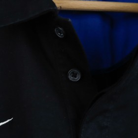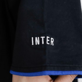 Polo ufficiale dell'Inter, stagione 2004/2005, prodotta dallo sponsor tecnico Nike. Modello Total 90, presenta una base nera con una manica blu a contrasto e dettagli bianchi sulle cuciture. Sul petto sono ricamati il logo Nike e lo stemma dell'Inter. Sulla manica è visibile il logo Total 90, simbolo delle collezioni Nike di quell'epoca. Taglia: L.