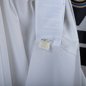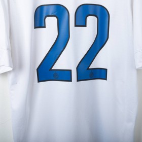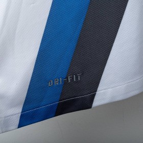 Maglia Away dell'Inter stagione 2011/2012 realizzata da Nike. La maglia è bianca con colletto nero e presenta una doppia banda diagonale blu e nera che attraversa il petto. Sulla parte frontale sono applicati lo swoosh Nike, lo sponsor commerciale Pirelli e lo stemma del club con stella. Sul retro è presente la personalizzazione Milito con il numero 22. Come indicato sull'etichetta interna “Nike Dri-Fit – Taglia L”.