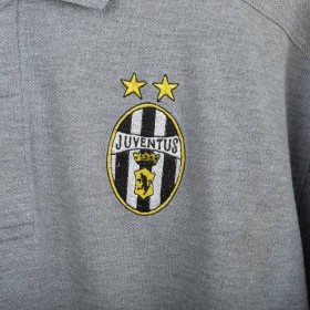 Polo Juventus della stagione 1995/1996 prodotta da Kappa. Colore grigio melange con logo Kappa ricamato sul petto destro e stemma Juventus cucito lato cuore con due stelle dorate. Colletto a polo con chiusura a laccio bianco. Vestibilità regolare. Taglia M. Prodotto ufficiale Kappa, fornitore tecnico Juventus.