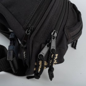 Marsupio Juventus prodotto da Kappa per la stagione 1995/1996. Modello in tessuto nero con doppia tasca frontale e zip rinforzate. Sul fronte è presente la scritta “Juventus” ricamata in bianco con due stelle dorate cucite in alto, simbolo dei 20 scudetti conquistati. Cintura regolabile con chiusura a clip in plastica resistente. Accessorio vintage originale anni '90, utilizzato come parte del materiale ufficiale Kappa fornito alla Juventus in quel periodo.