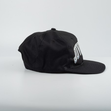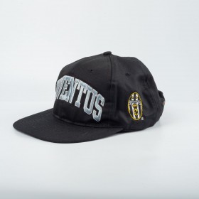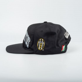 Cappello ufficiale Juventus prodotto da Kappa negli anni '80 in collaborazione con FSM. Modello snapback regolabile di colore nero. Sul fronte è presente la scritta “JUVENTUS” ricamata in bianco con profilo azzurro. Sul lato è applicato lo stemma Juventus dell'epoca, cucito in patch, mentre sul retro compare il logo Basic ricamato. Chiusura posteriore regolabile in plastica. Accessorio vintage originale anni '80, raro e da collezione.