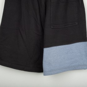 Bermuda da allenamento Juventus della stagione 1992/1993, prodotto da Kappa. Modello in tessuto nero con inserto grigio sulla gamba sinistra e scritta “JUVENTUS” stampata in grande. Logo Kappa ricamato in bianco sulla gamba destra. Elastico in vita con cordino interno regolabile e tasca posteriore. Vestibilità comoda, pensata per l'abbigliamento tecnico della squadra negli anni '90. Parte della linea “Gara” ufficiale Kappa.
